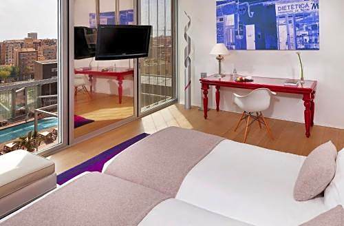 The room offers panoramic views of Barcelona and features a Nespresso coffee maker, a mini-bar and a flat-screen TV. The private bathroom has a rain-effect shower and includes The Level bathrobe and slippers.
